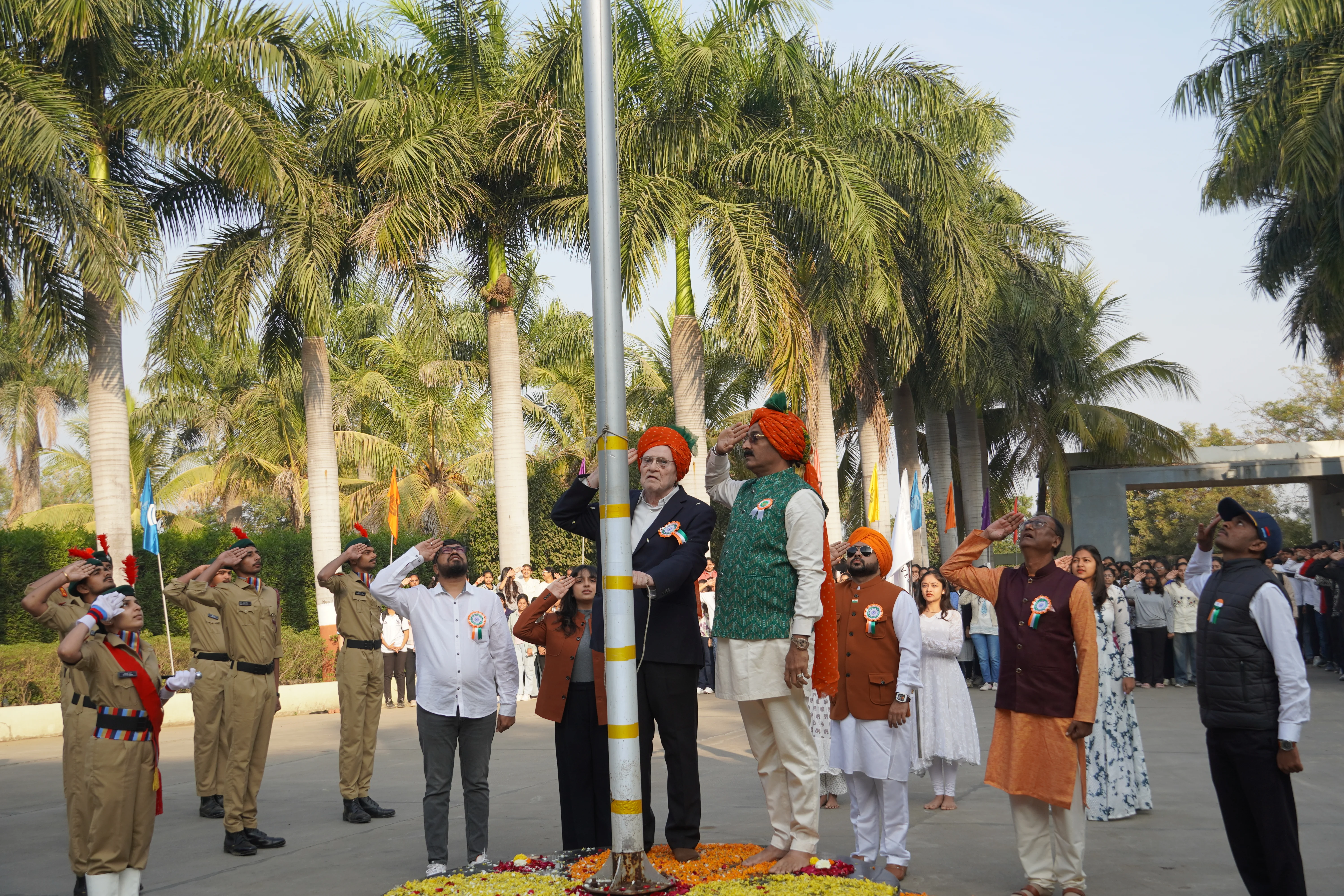 Noble University celebrated the 76th Republic Day of India with great pride, discipline, and patriotic fervor on 26th January. The celebration commenced with a grand parade, reflecting unity, national spirit, and respect for the Constitution of India. Students from various departments participated enthusiastically, displaying coordination, discipline, and a strong sense of patriotism.