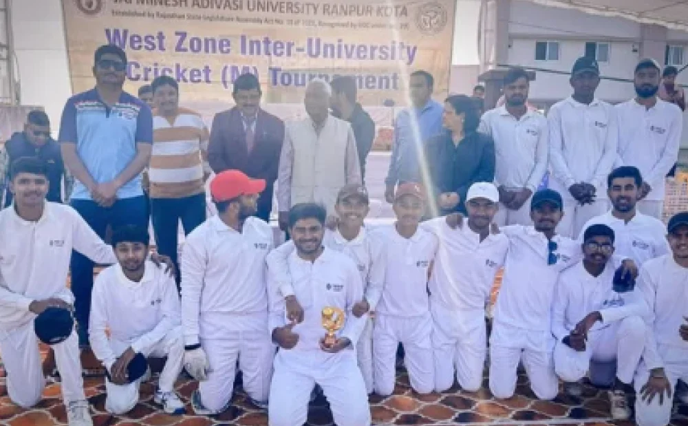 Noble University Shines at West Zone Inter-University Cricket Tournament “Noble University’s cricket team showcased a stellar performance against Auro University Surat in the first match